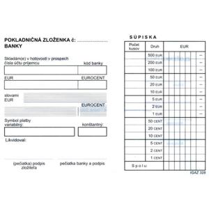 Pokladničná zloženka banky A6, samoprepis.100l.