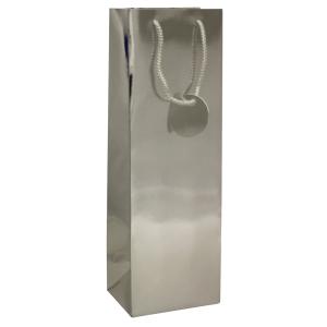 Papierová taška na víno 120x360x90mm textilné ušká vo farbe tašky strieborná