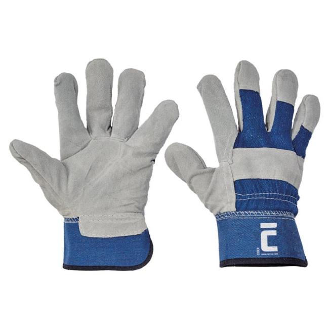 Rukavice z jedného kusa silnej hovädzej štiepenky v dlani s podšívkou, bavlnená tkanina na chrbte, s bavlnenou vystuženou manžetou, celokoženými palcami a ukazovákmi a prekrytými špičkami prstov. objednávací kód: CV640090, EAN: |
