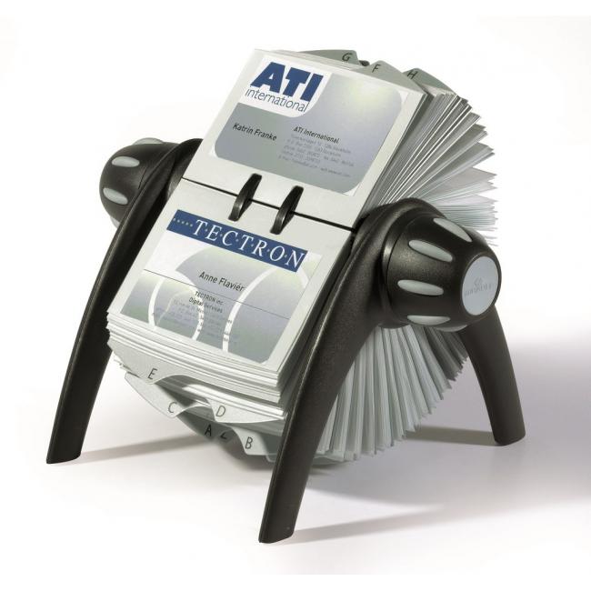 Rotačný vizitkár v exkluzívnom dizajne z plastu v kvalitnej povrchovej úprave. 200 obojstranných vreciek rozmeru 72 × 104 mm pre 400 vizitiek, abecedný rozraďovač s 25 oddielmi. Doplniteľný náhradnými vreckami Obj. kód DU241819. objednávací kód: DU241701, EAN: 4005546206356 |