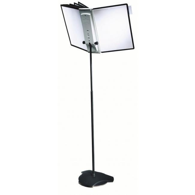 Podlahový statív na 10 panelov s pevným oceľovým podstavcom. Nastaviteľná výška 61 až 110 cm a uhol sklonu od 5 do 90 stupňov. Dodávaný s 10 katalógovými panelmi v čiernej farbe. Hmotnosť 4,9 kg. Farba antracitová/ sivá. objednávací kód: DU581700, EAN: 4005546505572 |