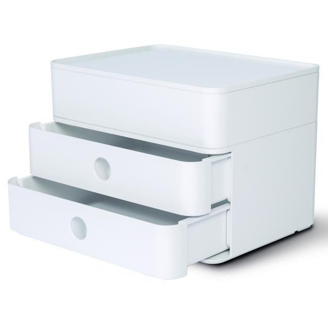 Moderný zásuvkový box v štýlovom dizajne s premyslenými detailami sa inšpiruje flexibilitou a moderným životným štýlom. Obsahuje odkladač s vekom a vyberateľnou miskou a 2 zatvorené zásuvky s oddeľovačmi a inteligentným otvorom pre kábel. Veko sa dá použiť ako servírovacia tácka. Rozmery (š × v × h) 260 × 195 × 190 mm. Farba biela. objednávací kód: HA110012, EAN: 4012473110007 |