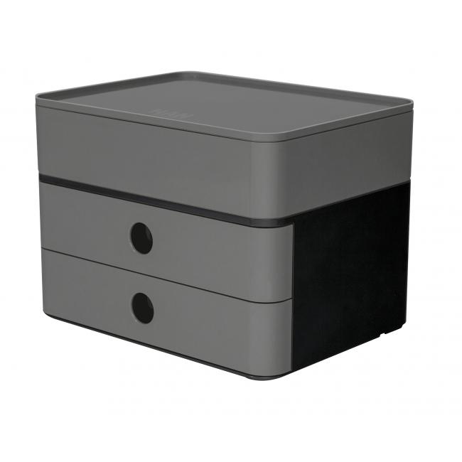 Moderný zásuvkový box v štýlovom dizajne s premyslenými detailami sa inšpiruje fl exibilitou a moderným životným štýlom. Obsahuje odkladač s vekom a vyberateľnou miskou a 2 zatvorené zásuvky s oddeľovačmi a inteligentným otvorom pre kábel. Veko sa dá použiť ako servírovacia tácka. Rozmery (š × v × h) 260 × 195 × 190 mm. Farba sivá. objednávací kód: HA110019, EAN: 4012473110045 |