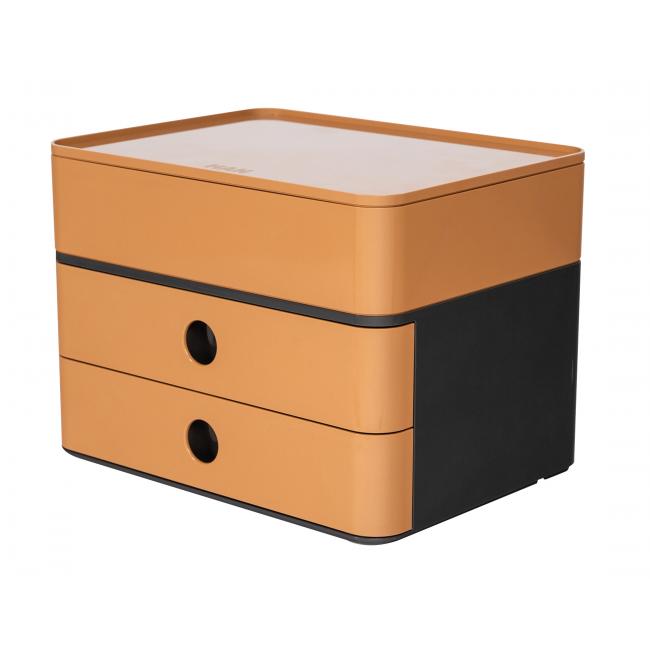 Moderný zásuvkový box v štýlovom dizajne s premyslenými detailami sa inšpiruje fl exibilitou a moderným životným štýlom. Obsahuje odkladač s vekom a vyberateľnou miskou a 2 zatvorené zásuvky s oddeľovačmi a inteligentným otvorom pre kábel. Veko sa dá použiť ako servírovacia tácka. Rozmery (š × v × h) 260 × 195 × 190 mm. Farba karamelovo hnedá. objednávací kód: HA110083, EAN: 4012473110076 |