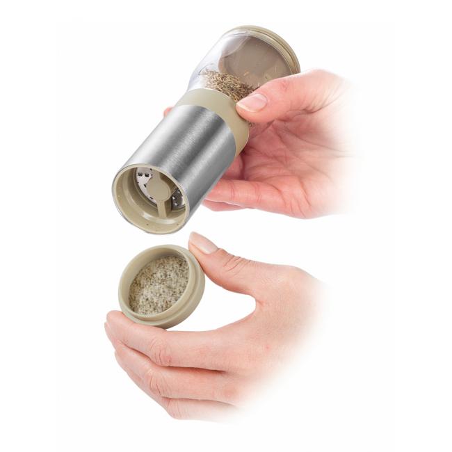 Moderný ručný mlynček na bylinky z prvotriednej nehrdzavejúcej ocele a odolného plastu na dochucovanie pokrmov počas varenia a pri stolovaní. Môžete ho odkladať ľubovoľnou stranou dole, čo oceníte hlavne pri intenzívnom používaní počas varenia. Vybavený kvalitným mlecím mechanizmom zo špeciálne tvrdenej keramiky s nastaviteľnou hrúbkou mletia a viečkom na zachytávanie zvyškov korenia. Výška 16 cm, priemer 5,5 cm. 3 roky záruka. objednávací kód: HY428796, EAN: 8595028488432 |