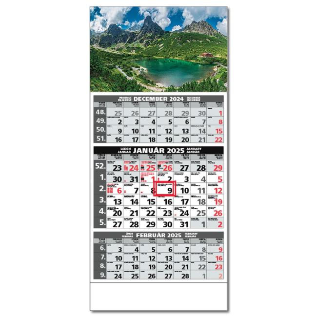Plánovací kalendár s 3-mesačným kalendáriom s menami v SK + CZ, názvy mesiacov a dní v SK, CZ, EN, DE a HU objednávací kód: T01, EAN: |