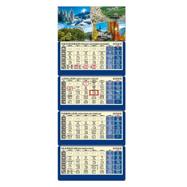 Luxusný štvordielny kalendár s menami v SK + CZ, názvy mesiacov a dní v SK, CZ, EN a DE. objednávací kód: T10L, EAN: |