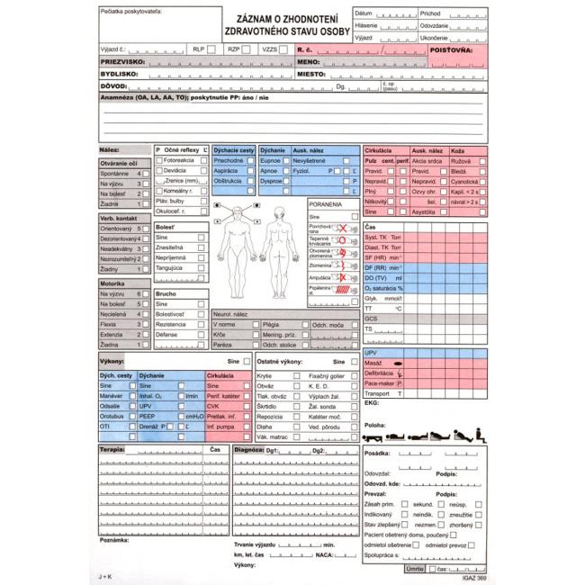 Záznam o zhodnotení zdravotného stavu osoby č.369, blok 100l.