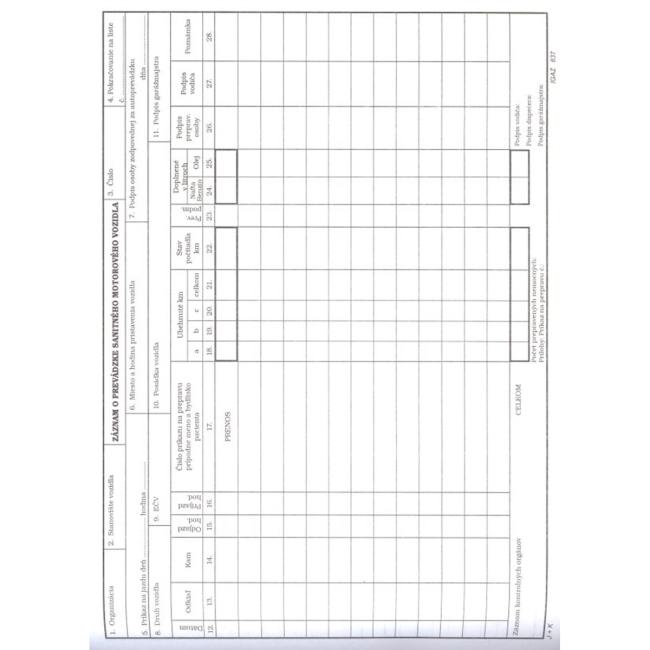 Záznam o prevádzke sanitného motorového vozidla - A4 blok. objednávací kód: TL000637, EAN: |
