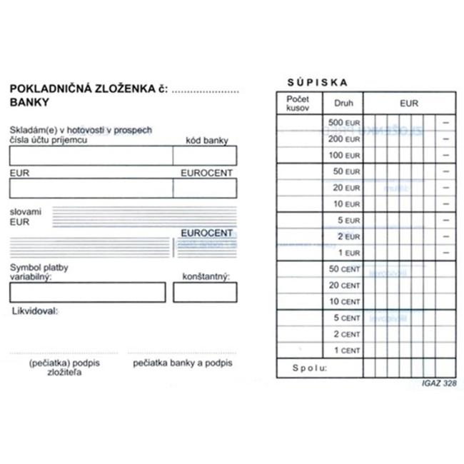 Pokladničná zloženka banky A6, samoprepis.100l.