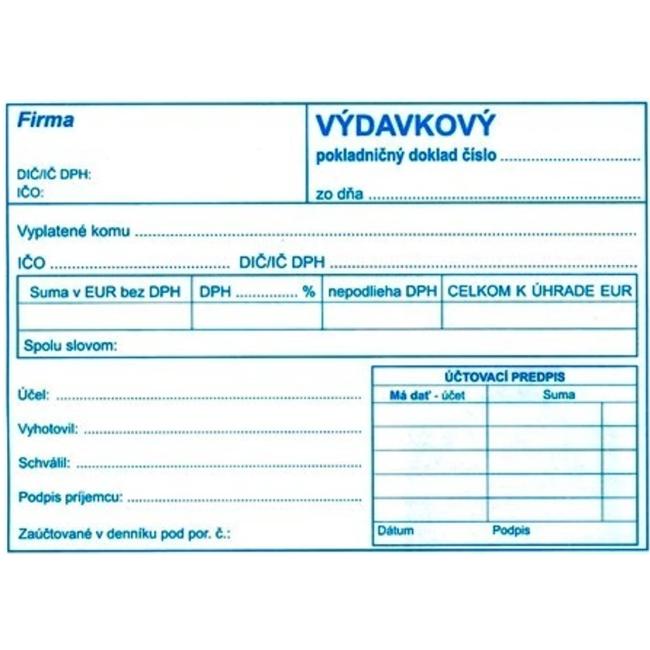 Výdavkový pokl.doklad A6 s DPH, 100 listov, novinový papier